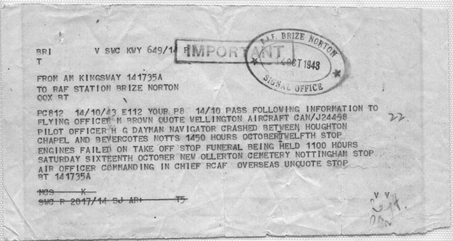 but the accident occurred in a Wellington when the aircraft crashed